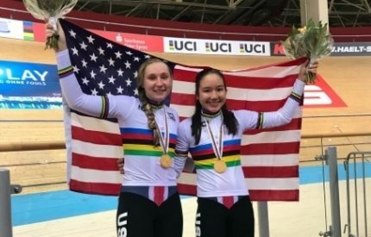 Winning Junior Madison Track Worlds with teammate Zoe Ta-Perez